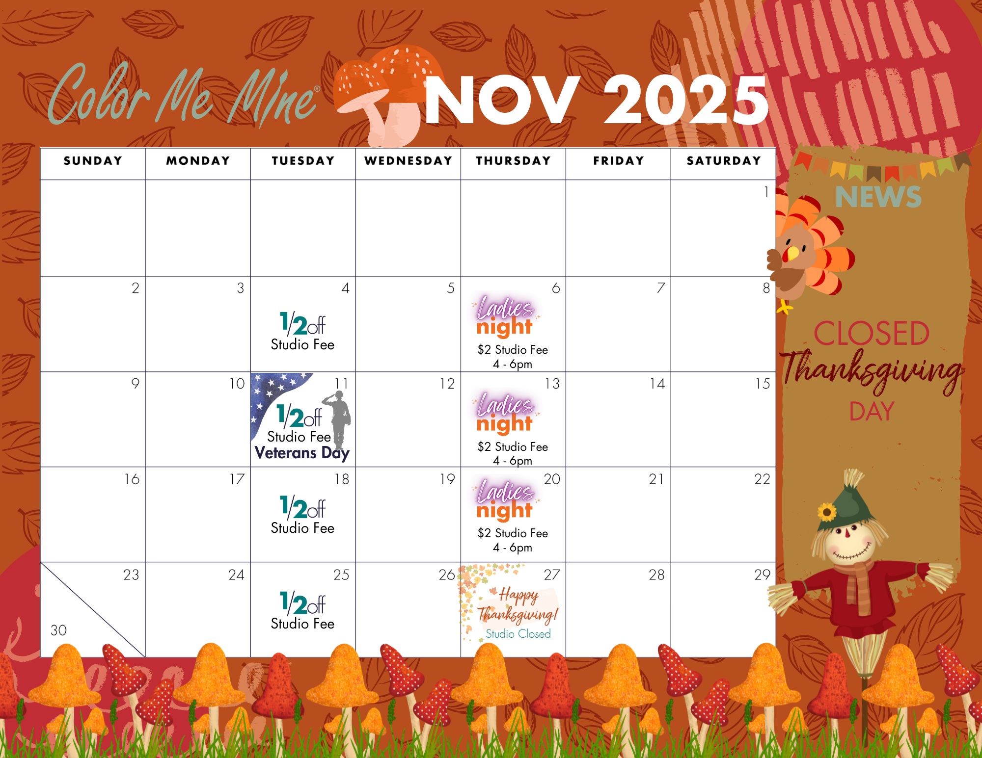 Pick as many paint colors as you'd like and take as much time as you need to perfect your masterpiece.Studio Fee: $10 per Person