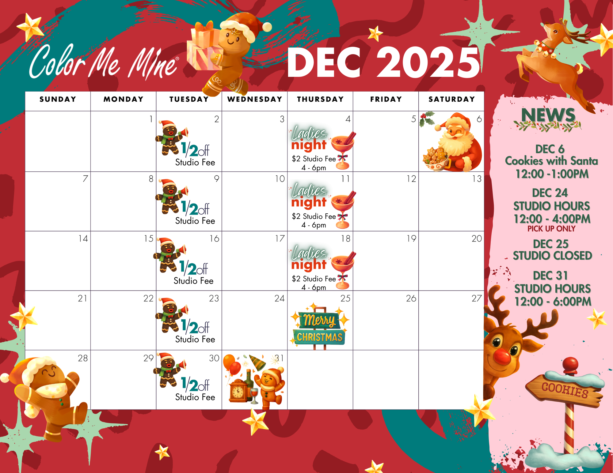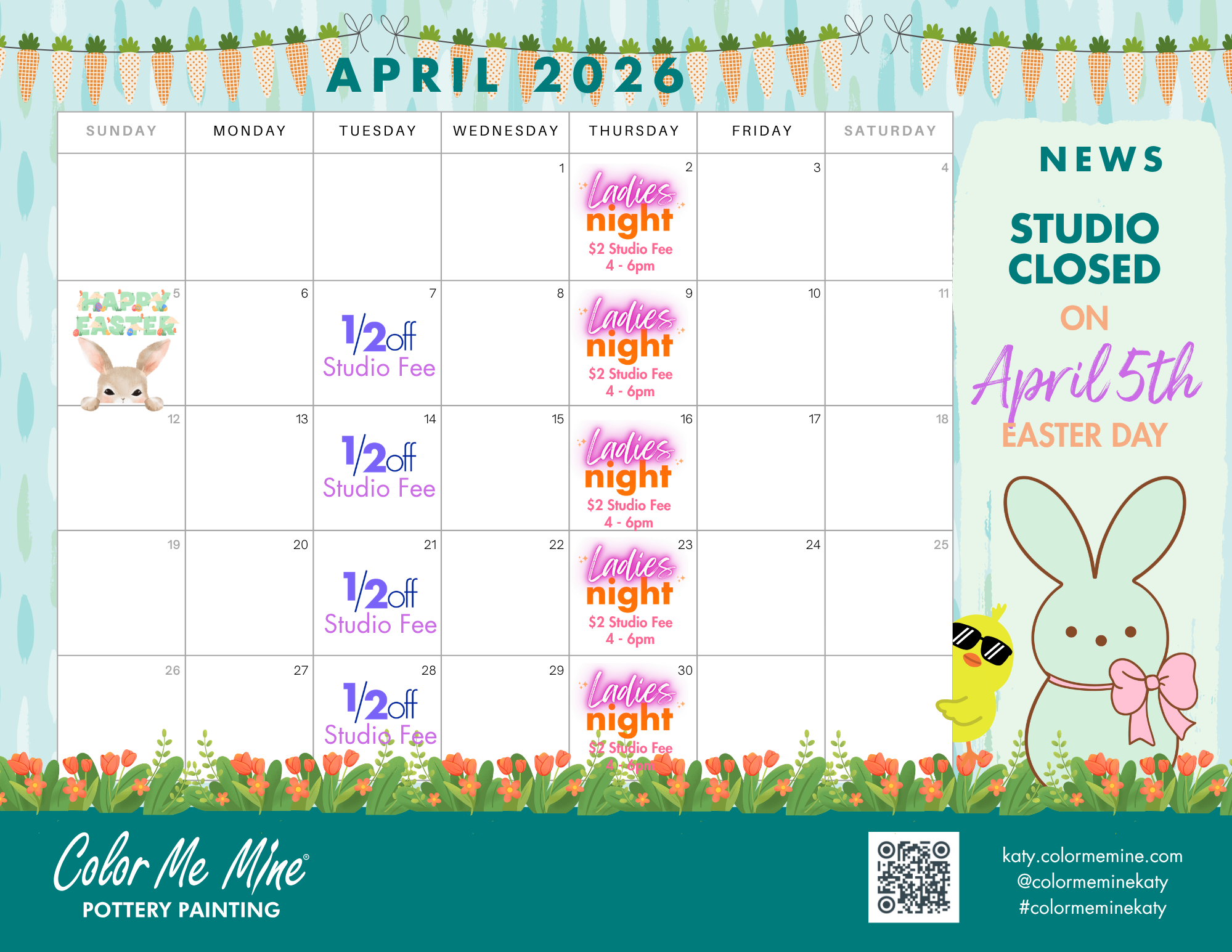 Pick as many paint colors as you'd like and take as much time as you need to perfect your masterpiece.Studio Fee: $10 per Person